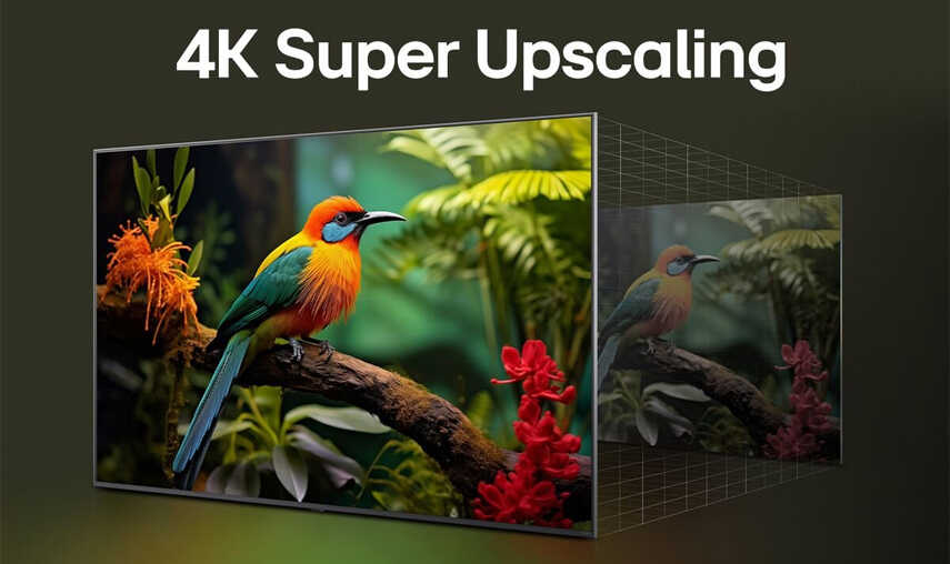 - Công nghệ 4K Super Upscaling nâng cấp nội dung từ độ phân giải thấp lên gần chuẩn 4K, mang cả thế giới đến trước mắt bạn với hình ảnh sắc nét, rõ ràng và chi tiết vượt trội, cho trải nghiệm xem sống động.