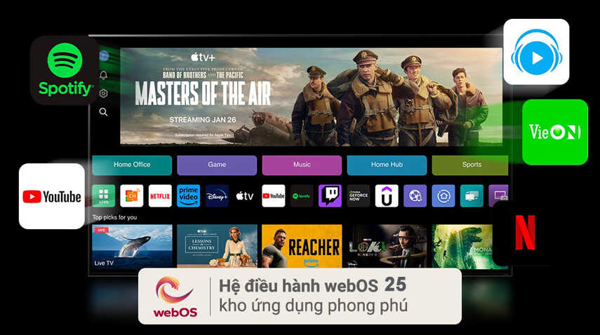 Hệ điều hành webOS 25 cùng kho ứng dụng giải trí phong phú.
