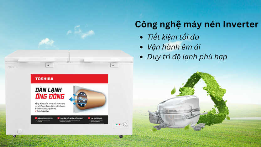 Tủ đông Toshiba GR-RC265CM được trang bị máy nén Inverter sử dụng công nghệ biến tần tiên tiến, có khả năng tự động điều chỉnh công suất làm việc tùy theo nhu cầu sử dụng. Nhờ đó, tủ đông làm lạnh nhanh chóng, duy trì nhiệt độ ổn định mà không tiêu tốn quá nhiều điện năng. So với máy nén thông thường, công nghệ Inverter giúp tiết kiệm đáng kể chi phí điện, đồng thời vận hành êm ái và bền bỉ hơn theo thời gian.