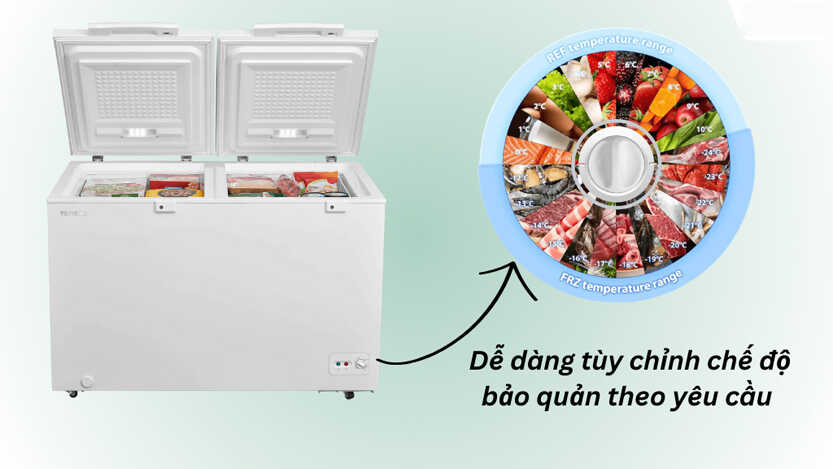 Dễ dàng thay đổi tủ theo chế độ tủ mát hoặc tủ đông, đáp ứng nhu cầu bảo quản đa dạng thực phẩm.