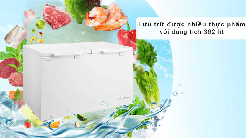 Tủ đông có thiết kế 2 cửa, 1 ngăn với dung tích sử dụng 362 lít.