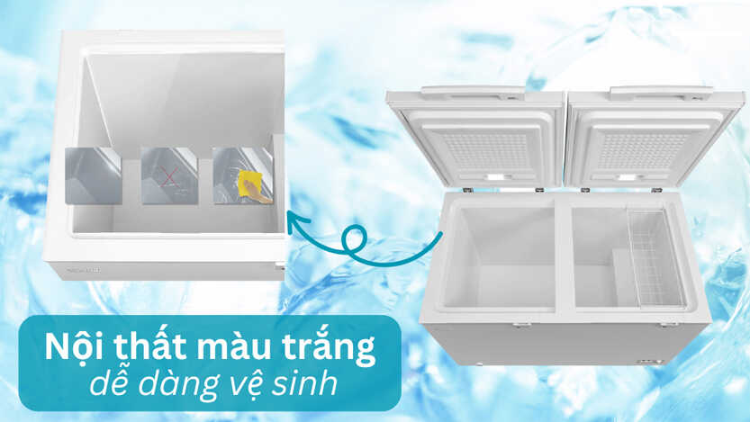 Tủ đông GR-RC470CM sở hữu nội thất sáng màu, mang lại cảm giác thông thoáng, sạch sẽ và thẩm mỹ cho không gian lưu trữ thực phẩm. Bề mặt bên trong được thiết kế nhẵn mịn, dễ lau chùi, giúp người dùng loại bỏ các vết bẩn một cách nhanh chóng. Nhờ đó, tủ luôn duy trì được sự sạch sẽ, tinh tươm và bền đẹp theo thời gian, đảm bảo an toàn vệ sinh thực phẩm tối ưu.