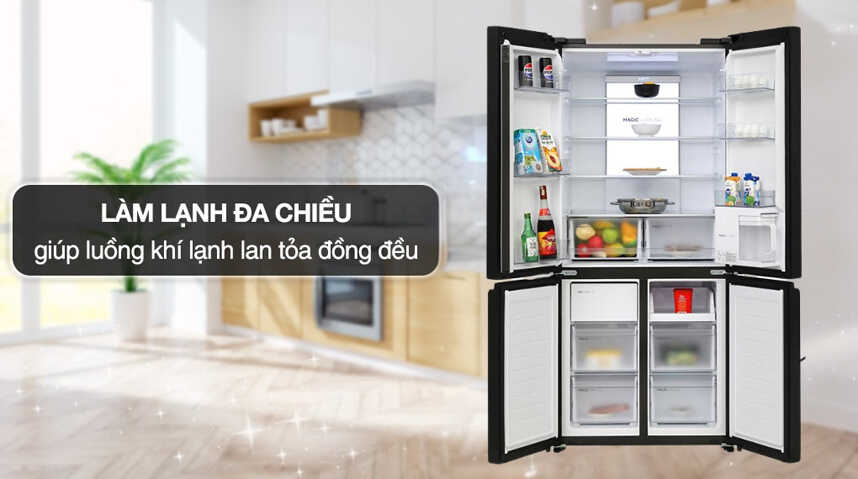 - Công nghệ làm lạnh đa chiều 360 độ làm lạnh đồng đều các ngăn tủ