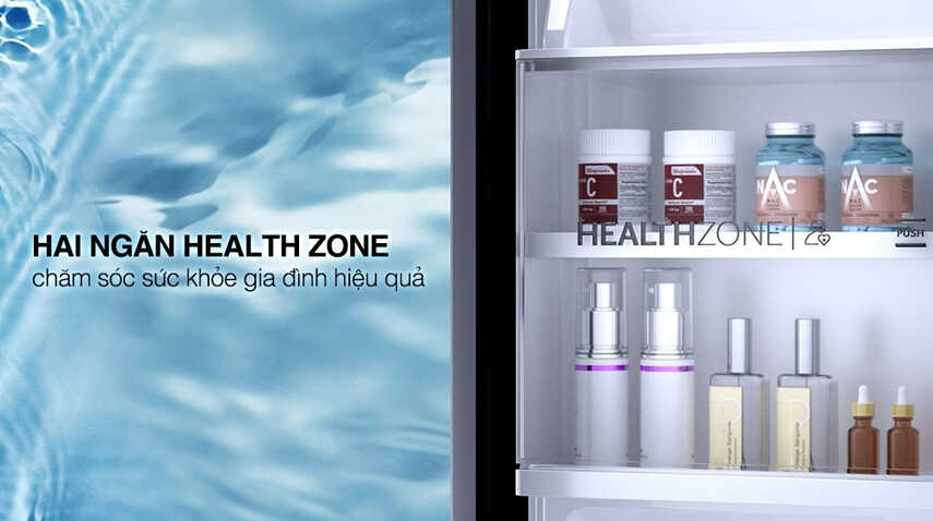 - 2 ngăn Health Zone lưu trữ mỹ phẩm, vitamin, thuốc hiệu quả. Với 2 ngăn lưu trữ riêng biệt có thể dễ dàng sắp xếp phù hợp với nhu cầu sử dụng.