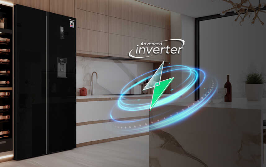 - Tủ lạnh Casper RS-D462SBS được trang bị máy nén ProFresh tích hợp công nghệ Advanced Inverter tiên tiến, giúp tối ưu hiệu suất làm lạnh trong khi vẫn tiết kiệm điện năng hiệu quả. Công nghệ này còn đảm bảo tủ vận hành êm ái, ổn định và bền bỉ theo thời gian, mang đến không gian lưu trữ thực phẩm luôn tươi ngon, đồng thời giảm chi phí điện năng hàng tháng cho gia đình.
