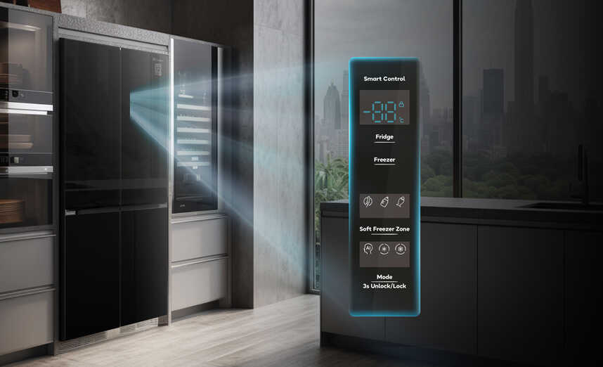 - Bảng điều khiển Smart Control được trang bị màn hình LED cảm ứng hiện đại, cho phép người dùng dễ dàng điều chỉnh nhiệt độ và kích hoạt nhanh các chế độ làm lạnh chỉ với một chạm. Nhờ thiết kế điều khiển bên ngoài cửa tủ, bạn có thể thao tác tiện lợi mà không cần mở cửa, giúp hạn chế thất thoát hơi lạnh và duy trì hiệu suất làm lạnh tối ưu cho thực phẩm luôn tươi ngon.