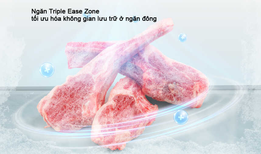- Ngăn Triple Ease Zone với thiết kế thông minh nhằm tối ưu hóa không gian lưu trữ trong ngăn đá. Nhờ Bộ lọc khử mùi Triple Power, ngăn này giúp loại bỏ mùi khó chịu, giữ cho thực phẩm đông lạnh luôn tươi mới và thơm sạch. Thiết kế ngăn kéo trượt êm ái cùng cửa đóng tự động tiện lợi giúp người dùng dễ dàng lấy, sắp xếp và vệ sinh thực phẩm, mang lại trải nghiệm sử dụng tiện nghi và cao cấp.