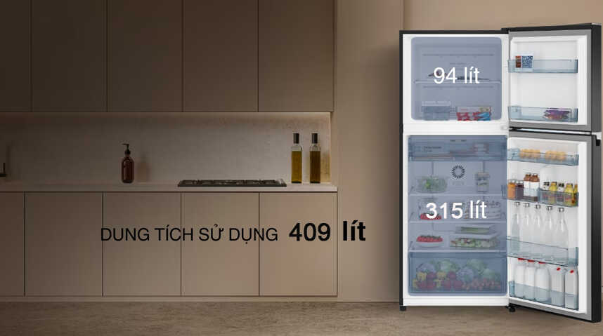 Dung tích sử dụng 409 lít phù hợp gia đình 3-5 người