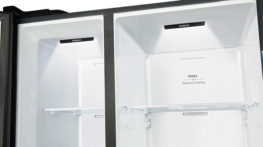 - Công nghệ Làm lạnh Vòng cung kép (Dual Surround Cooling) của Hitachi mang đến môi trường bảo quản tối ưu với độ ẩm lên đến 80%*, giúp thực phẩm luôn tươi ngon và giữ được hương vị tự nhiên lâu hơn. Hệ thống luồng khí lạnh lan tỏa đồng đều đến từng ngăn, hạn chế tình trạng khô héo hay mất nước, đồng thời duy trì sự cân bằng lý tưởng cho nhiều loại thực phẩm khác nhau.