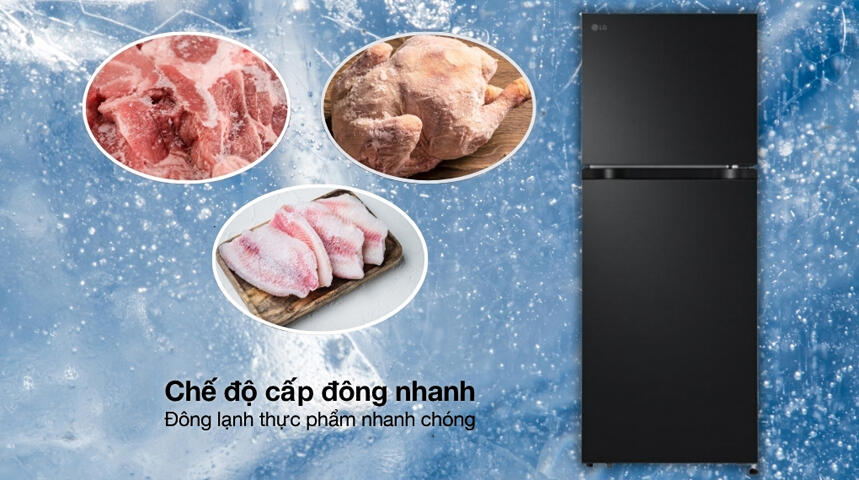 - Chế độ cấp đông nhanh giúp hạ nhiệt độ ngăn đá trong thời gian ngắn, hỗ trợ làm đông thực phẩm nhanh chóng, giữ trọn độ tươi ngon và chất lượng thực phẩm, đồng thời thuận tiện khi cần làm đá hoặc bảo quản lượng lớn thực phẩm trong thời gian ngắn.