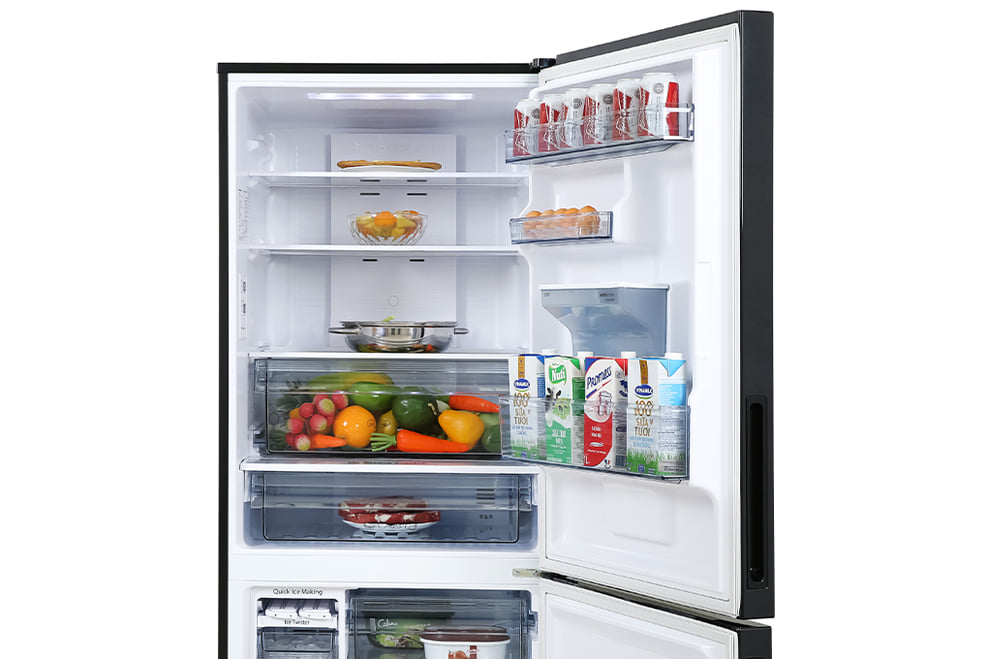 Tủ lạnh với ngăn rau quả được cải tiến với thiết kế rộng rãi kèm theo khả năng giữ ẩm đến 90%. Nhờ đó, rau và trái cây sẽ luôn được bảo quản tươi ngon, mọng nước như vừa mới mua về.