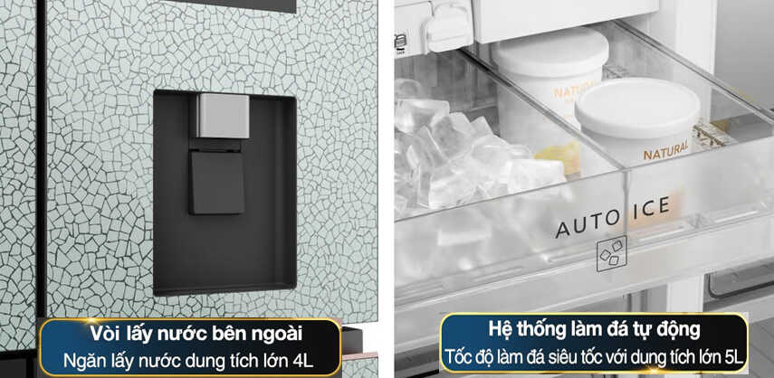 Tính năng làm đá tự động nhanh chóng có đá viên sẵn sàng sử dụng