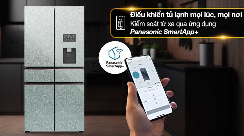 - Kết nối Wifi và điều khiển tiện lợi qua ứng dụng Panasonic SmartApp+ trên điện thoại thông minh. Bạn có thể dễ dàng tùy chỉnh cài đặt, theo dõi mức tiêu thụ điện và nhận thông báo nhanh chóng mọi lúc, mọi nơi, mang lại trải nghiệm sử dụng thông minh và hiện đại, giúp quản lý tủ lạnh hiệu quả hơn.