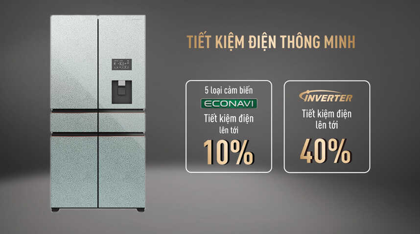 - Cảm biến Econavi thông minh, tự động nhận biết và phân tích thói quen sử dụng của gia đình dựa trên dữ liệu như thời gian mở cửa, nhiệt độ môi trường và mức độ sử dụng. Econavi tự động điều chỉnh chế độ làm lạnh phù hợp, đảm bảo thực phẩm luôn tươi ngon và tiết kiệm năng lượng hiệu quả.