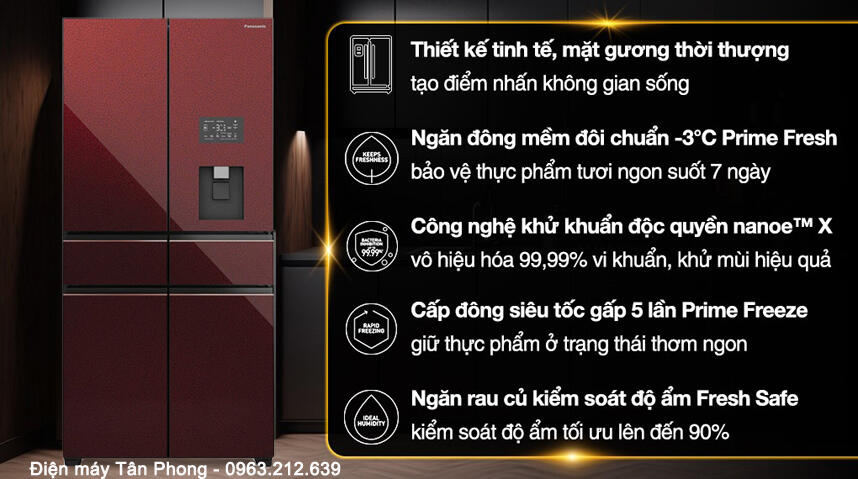 - Dòng tủ lạnh Multidoor Inverter 650 lít NR-WY720ZX5V với 2 ngăn đông mềm PrimeFresh riêng biệt bảo quản ở nhiệt độ chuẩn -3 ° C duy trì độ tươi ngon suốt 7 ngày, nấu ngay không cần rã đông. Ngăn đông mềm Prime Fresh cho phép bạn bảo quản thực phẩm tươi sống (thịt, cá) ở nhiệt độ thấp -3 độ mà không bị đông đá đến 7 ngày. Bạn chỉ cần đi chợ 1 lần mà vẫn đầy ắp đồ tươi cả tuần, mỗi lần chế biến lại cực kỳ tiện lợi vì không mất thời gian đợi rã đông.