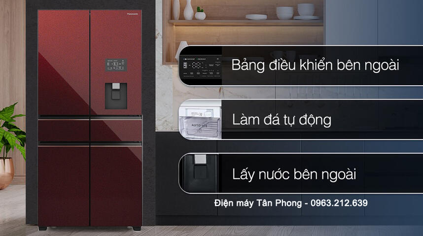 Tủ lạnh Multi Doors 6 cánh,thiết kế phẳng tràn viền mặt Gương đỏ vân gỗ đẳng cấp