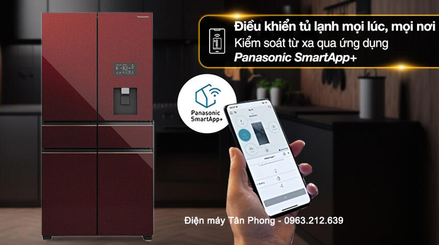 - Kết nối và điều khiển dễ dàng qua ứng dụng Panasonic SmartApp+ trên điện thoại: Bạn có thể tùy chỉnh cài đặt, theo dõi mức tiêu thụ điện và nhận thông báo tiện lợi mọi lúc, mọi nơi, giúp quản lý tủ lạnh thông minh và hiệu quả hơn.