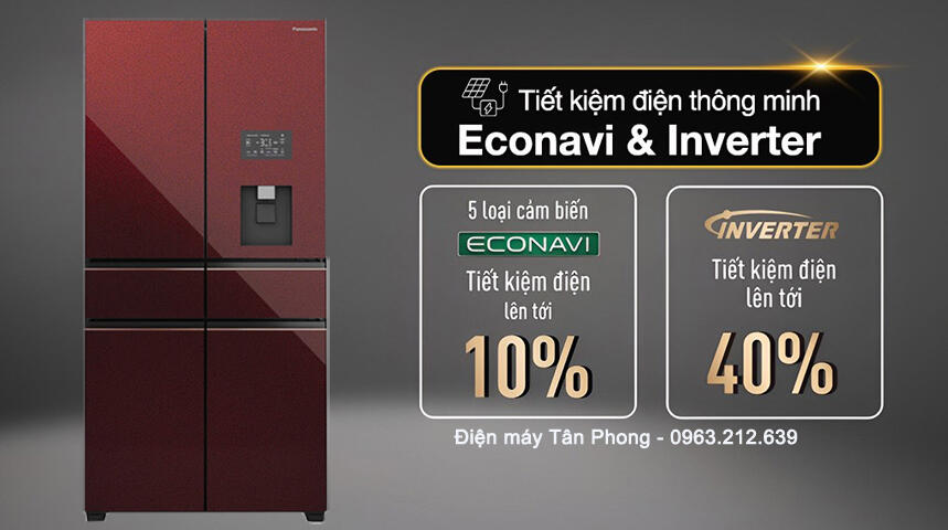 - Công nghệ Inverter trên tủ lạnh Panasonic NR-WY720ZX5V tự động điều chỉnh công suất máy nén phù hợp với nhu cầu làm lạnh, giúp tiết kiệm điện năng hiệu quả đến 40%. Nhờ đó, tủ vận hành êm ái, bền bỉ, giảm tiếng ồn và duy trì nhiệt độ ổn định, mang lại không gian yên tĩnh và tiết kiệm chi phí điện hàng tháng cho gia đình bạn.