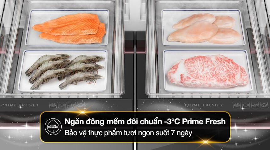 Ngăn đông mềm Prime Fresh+ chuẩn -3°C bảo quản thịt cá tươi ngon đến 7 ngày