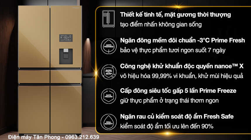 - Tủ lạnh Tailor-Made Multi Door mang tính ứng dụng cao với ngăn lưu trữ linh hoạt, vật liệu cao cấp và gam màu thời thượng, nâng tầm không gian sống yêu thích của bạn, mang đến sự tiện nghi và phong cách hiện đại, đáp ứng nhu cầu bảo quản thực phẩm và tạo điểm nhấn cho không gian sống.