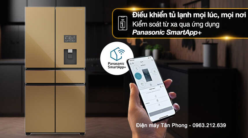 - Điều khiển và giám sát tủ lạnh bằng điện thoại qua ứng dụng Panasonic SmartApp+: Kết nối mọi lúc, mọi nơi giúp tối ưu hiệu suất hoạt động và tiết kiệm điện năng một cách thông minh, mang lại sự tiện nghi và kiểm soát dễ dàng cho gia đình bạn.