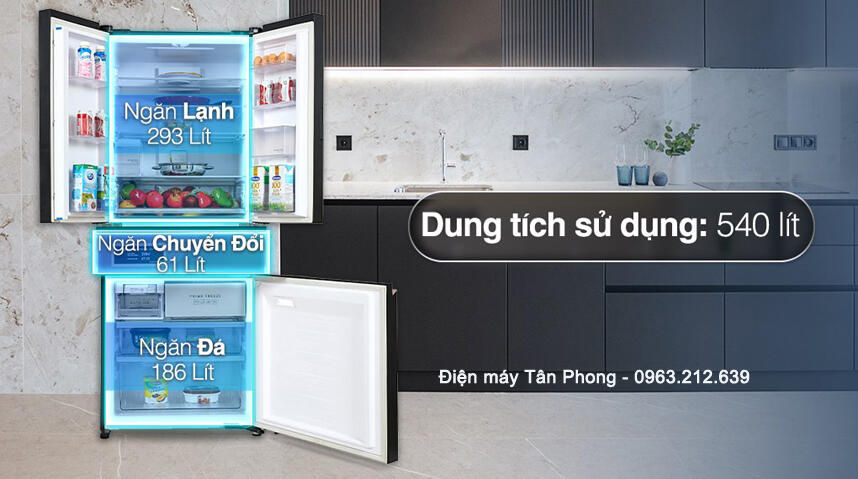 Dung tích sử dụng 540 lít phù hợp cho gia đình có 4 - 5 thành viên