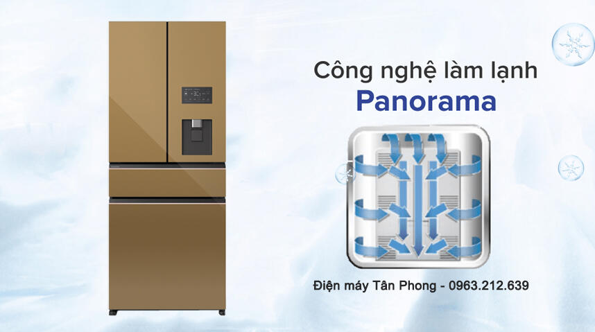 Công nghệ làm lạnh Panorama mang hơi lạnh tỏa đều khắp tủ, giúp thực phẩm luôn tươi ngon trong suốt thời gian bảo quản.