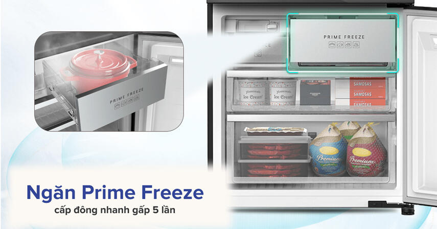 Cấp đông nhanh siêu tốc nhanh gấp 5 lần với ngăn Frime Freezer